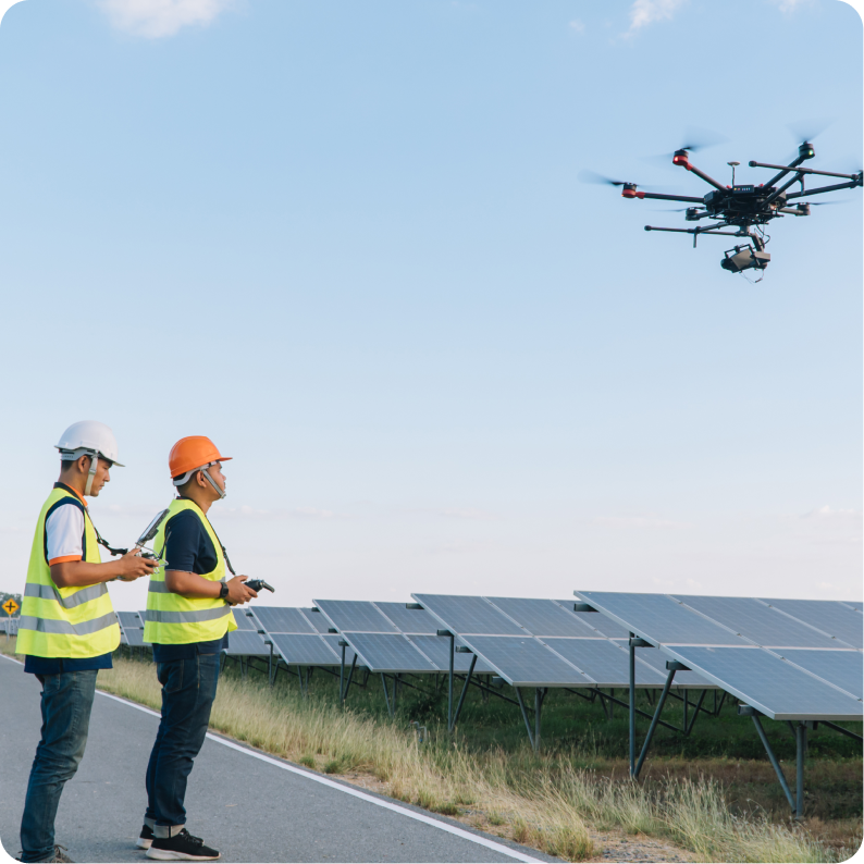 目視では判断しづらいモジュールの劣化や異常を、 独自の劣化診断システムと点検用ドローンによって早期発見。 空撮・IR(赤外線)・データ分析などを組み合わせた高度な 点検で、トラブルの芽を事前に摘み取ります。